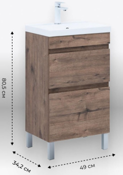 Тумба с раковиной Aquanet Нота New 50 напольная, дуб веллингтон табак