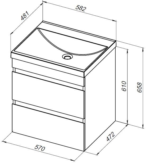 Тумба с раковиной Aquanet Нота new 58 цв.дуб светлый