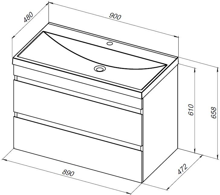 Тумба с раковиной Aquanet Нота new 90 цв.дуб веллингтон табак