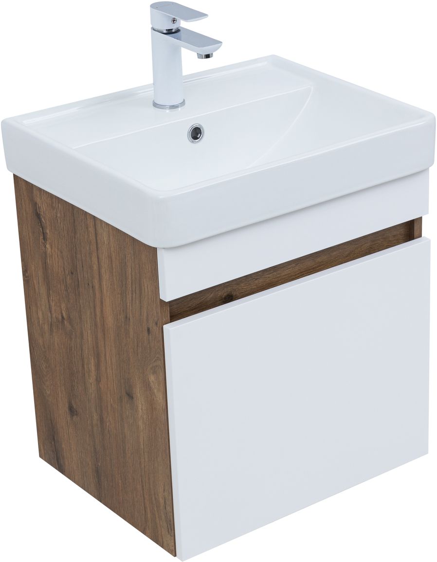 Тумба с раковиной Aquanet Оптима 50 цв. дуб рустикальный/белый сатин