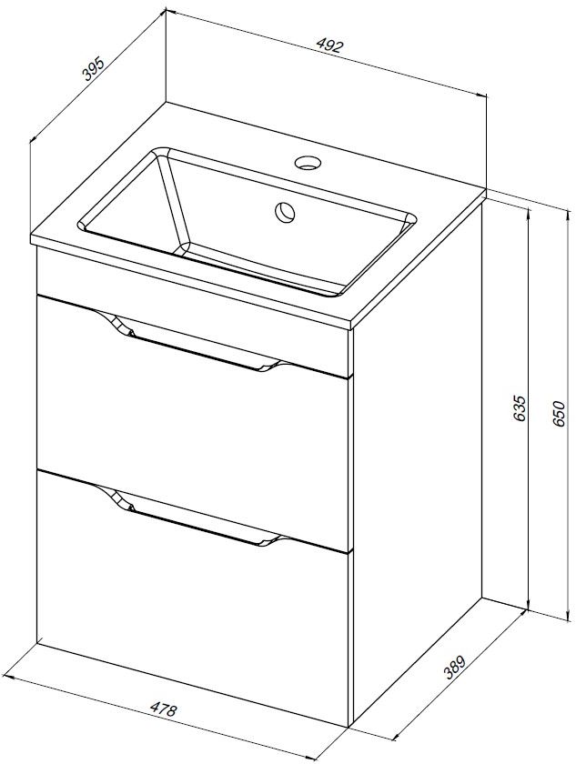 Тумба с раковиной Aquanet Практика 50 2 ящ. цв.белый матовый