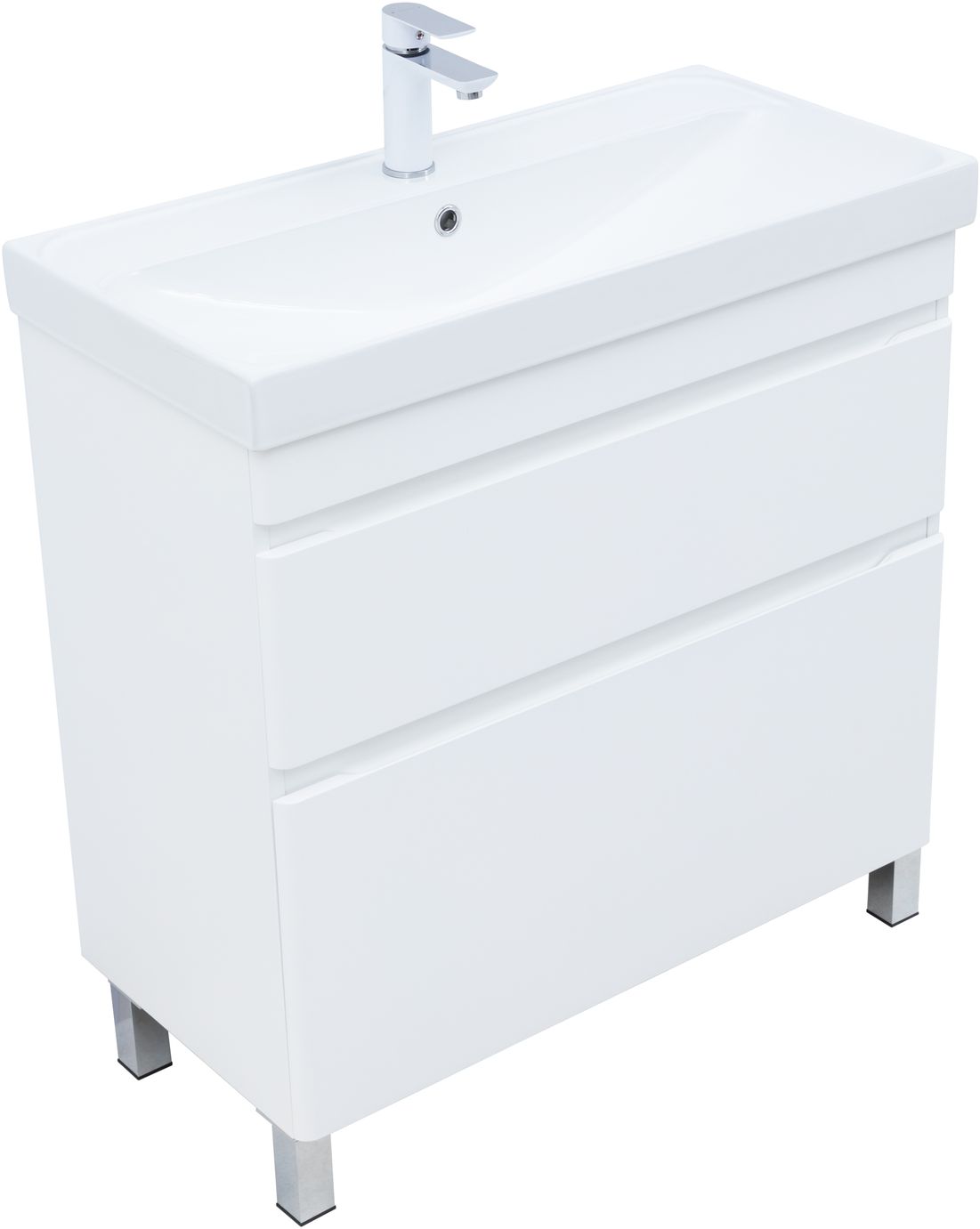 Тумба с раковиной Aquanet Слим 80 напольная 2 ящ. цв.белый сатин
