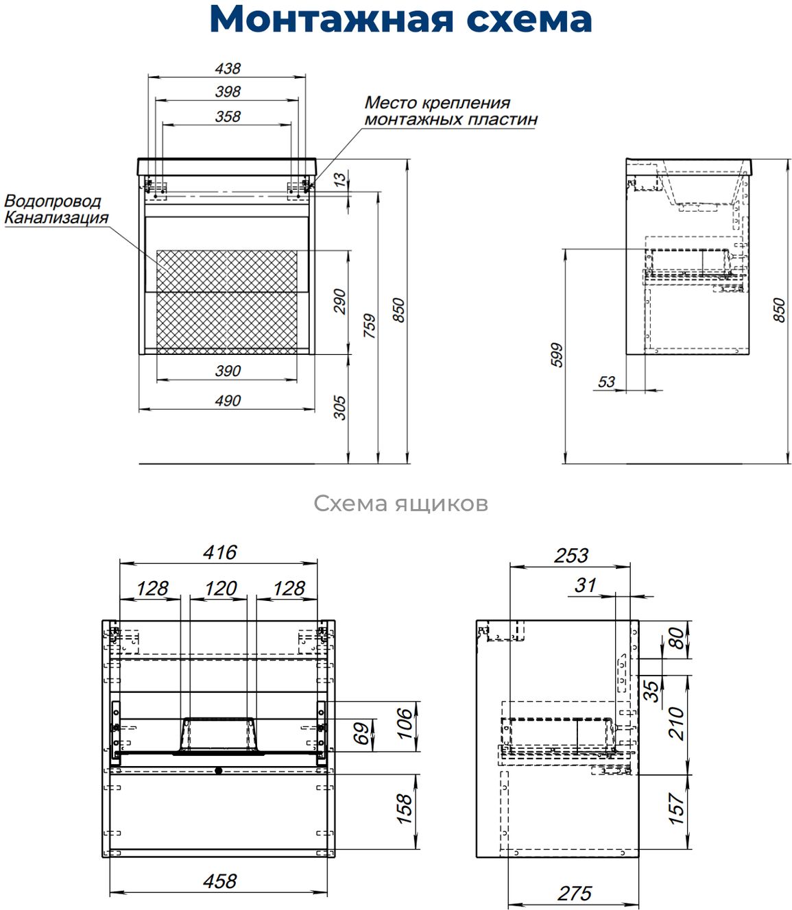 Тумба с раковиной Aquanet Тренд 50 цв. дуб рустикальный/белый сатин