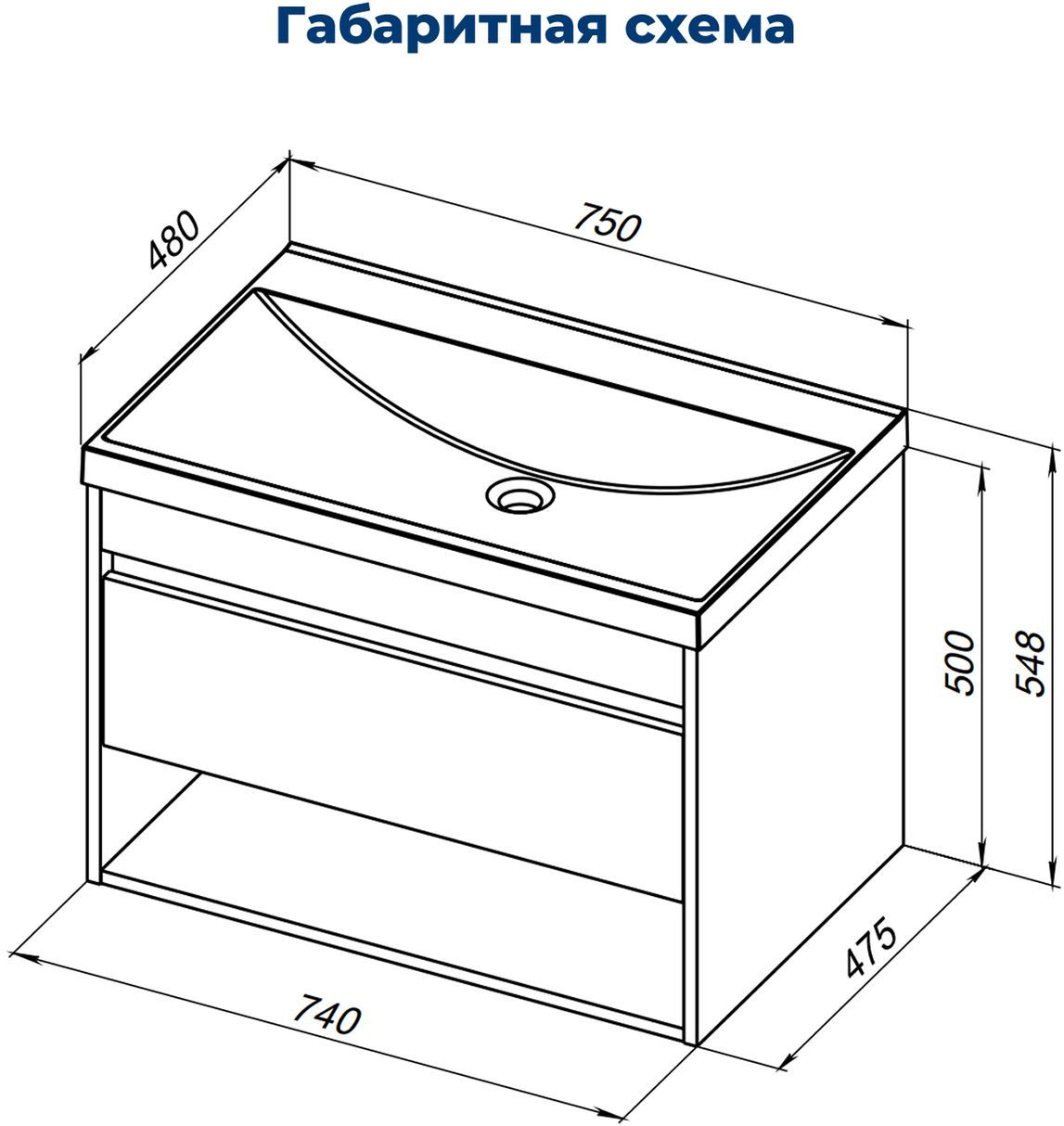 Тумба с раковиной Aquanet Тренд 75 цв. дуб рустикальный/белый сатин
