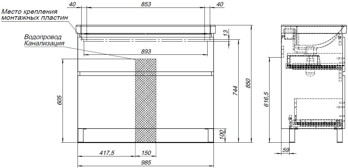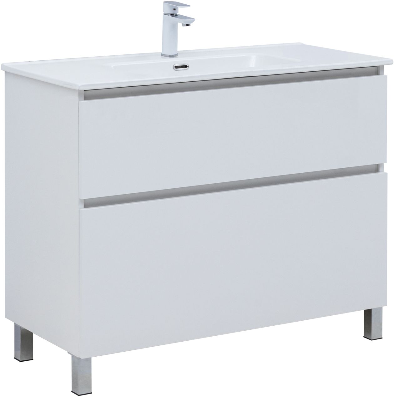Тумба с раковиной Aquanet Вега 100 (Flat) напольная 2 ящ. цв. белый глянец