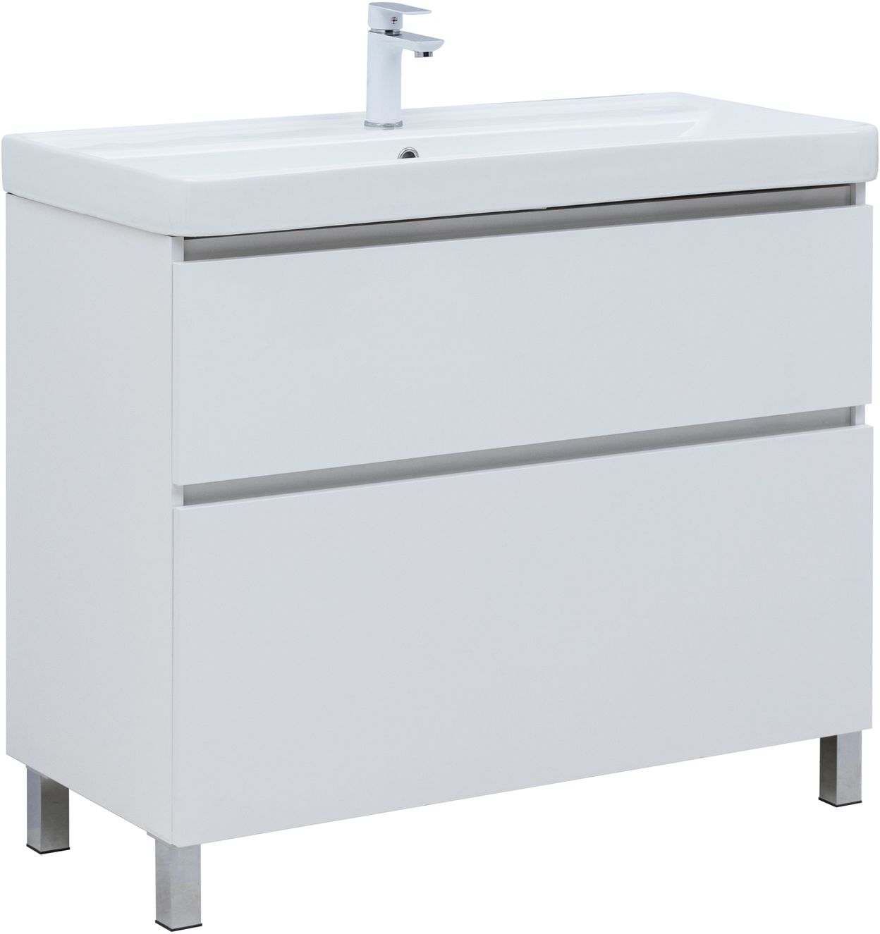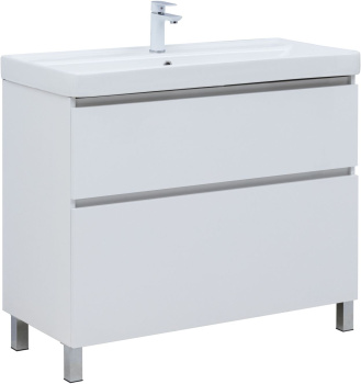 Тумба с раковиной Aquanet Вега 100 (Ирис) напольная 2 ящ. цв. белый глянец