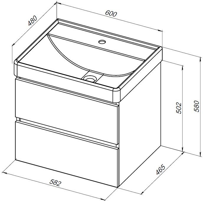 Тумба с раковиной Aquanet Вега 2.0 60 2 ящ. цв.бежевый (раковина Flat)