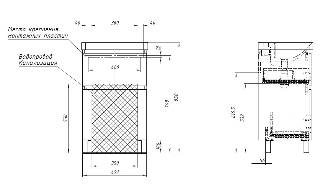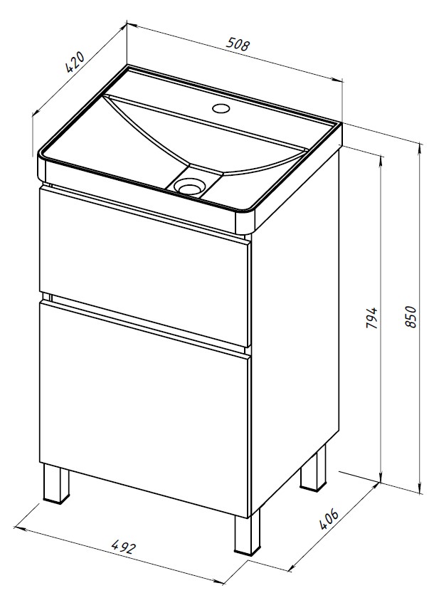 Тумба с раковиной Aquanet Вега 50 напольная белый глянец