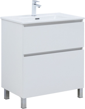Тумба с раковиной Aquanet Вега 70 (Flat) напольная 2 ящ. цв. белый глянец
