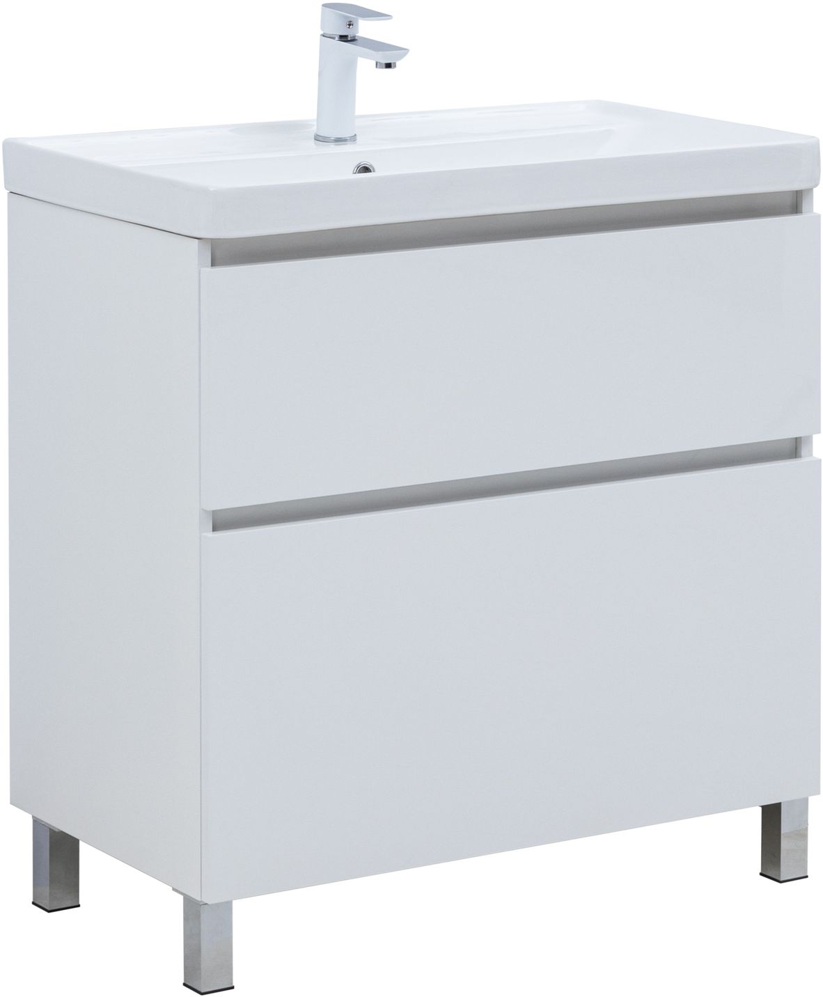 Тумба с раковиной Aquanet Вега 80 (Ирис) напольная 2 ящ. цв. белый глянец
