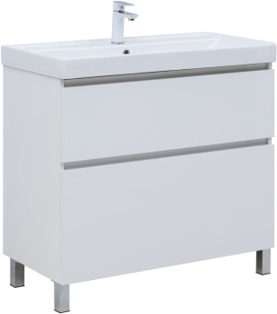 Тумба с раковиной Aquanet Вега 90 (Ирис) напольная 2 ящ. цв. белый глянец
