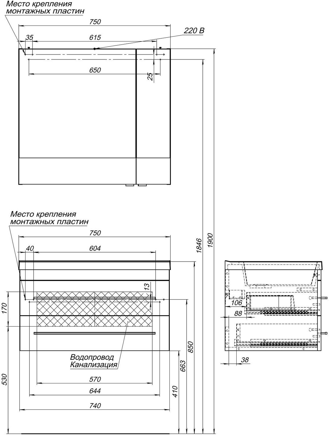 Тумба с раковиной Aquanet Верона 75 белый (подвесная 2 ящика)
