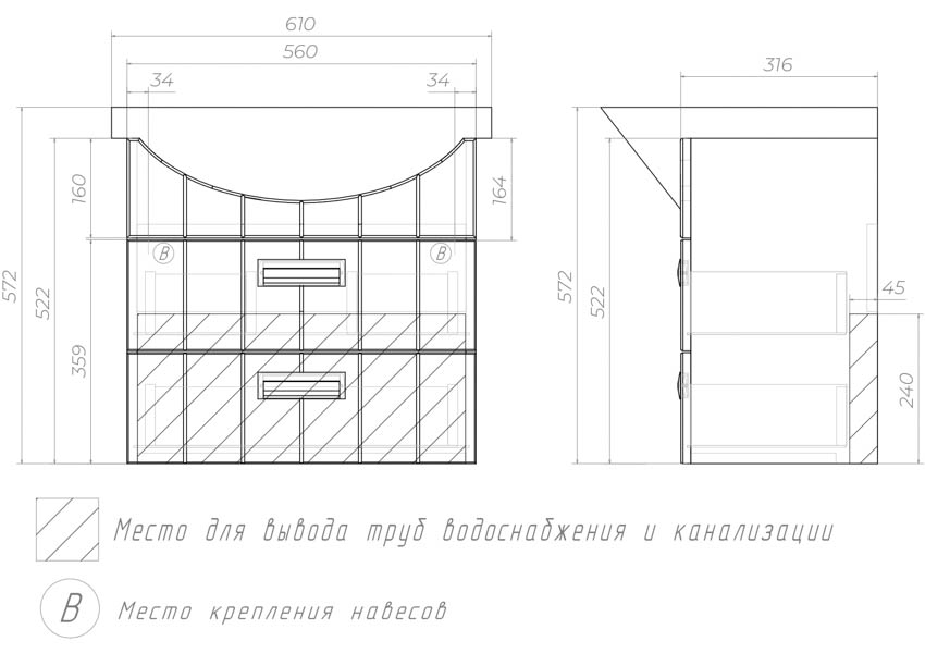 Тумба с умывальником VIGO Diana 2-600