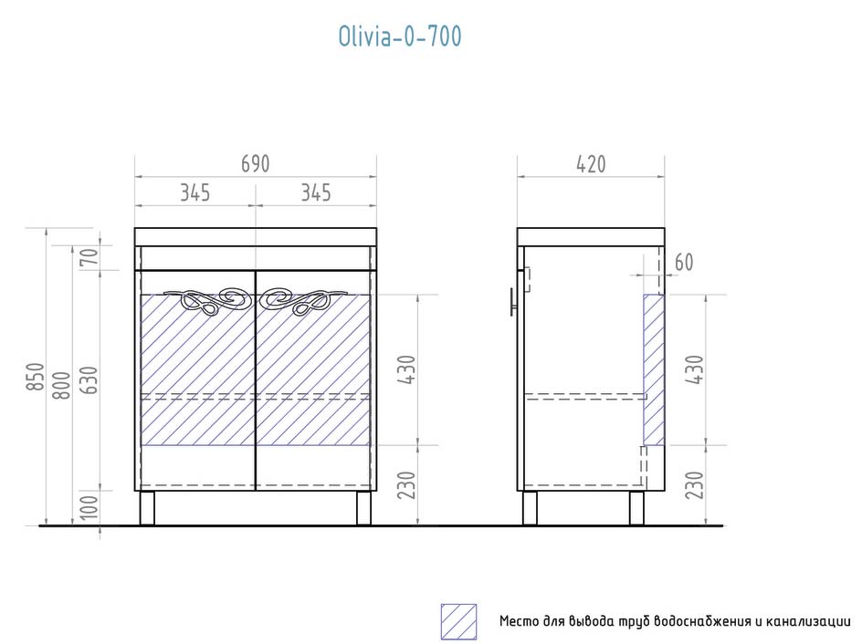 Тумба с умывальником VIGO Olivia 700