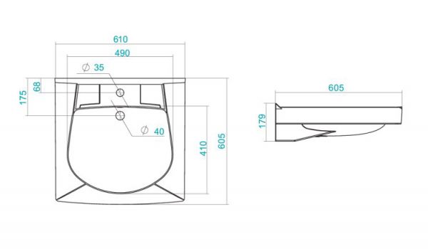 Умывальник Пилот 60, WH110578 с кронштейном, крепежом и сифоном