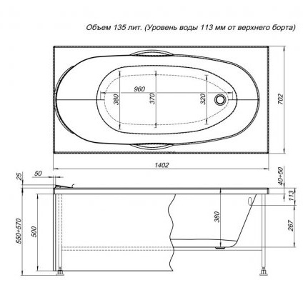 Ванна акриловая Aquanet Dali 140x70 (239579)