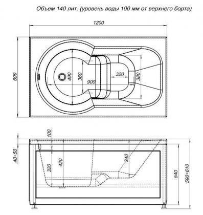 Ванна акриловая Aquanet Largo 120x70 (203990)