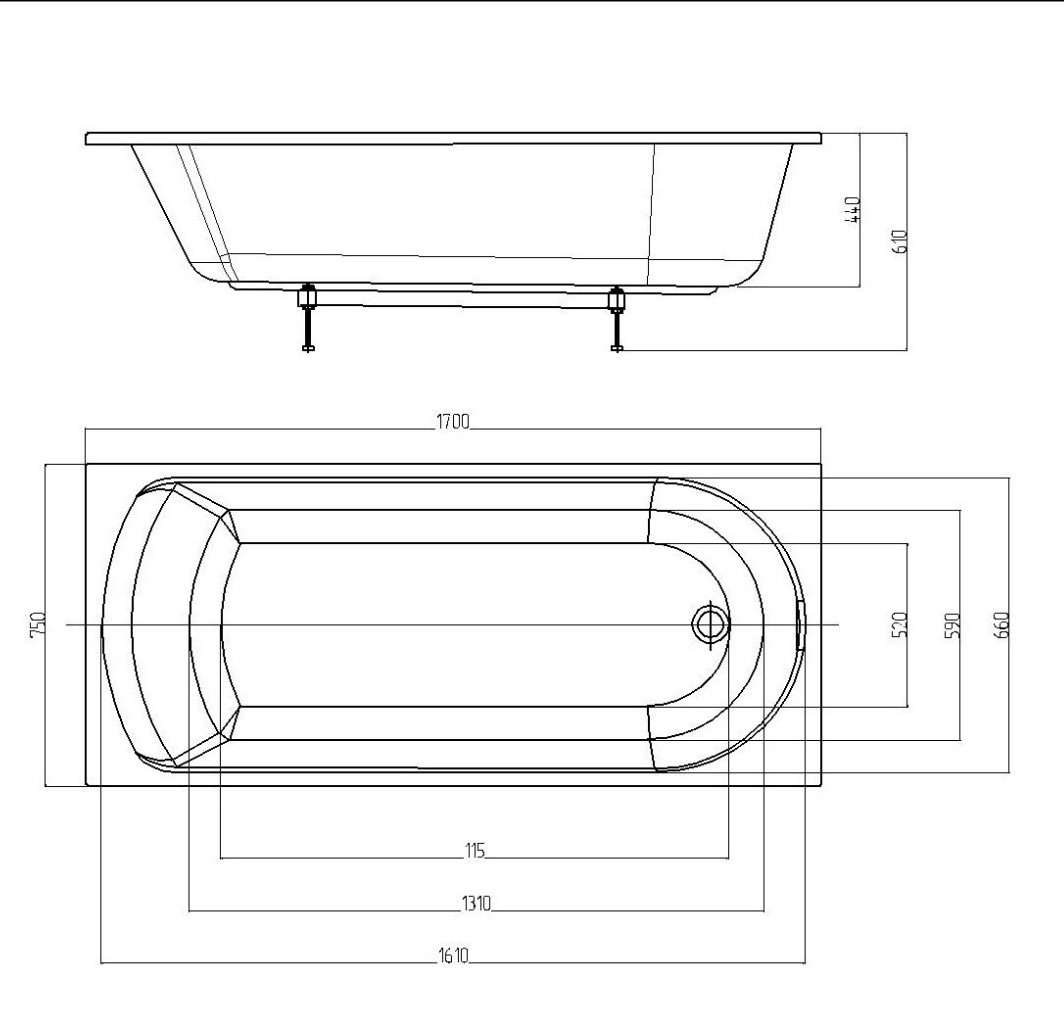 Ванна акриловая AZARIO ADELINA прямоугольная 170*75 см (AV.0010170)