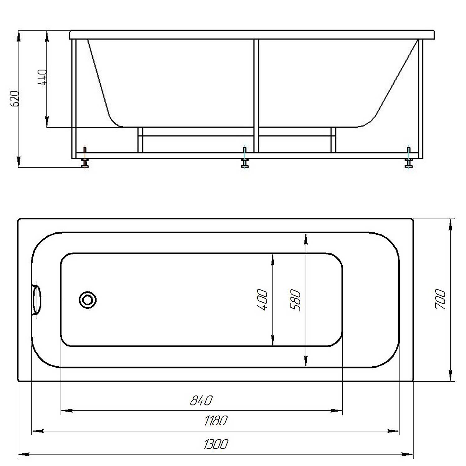 Ванна акриловая Azario BELLA 130*70 см, пристенная, прямоугольная, белый (AV.0020130)