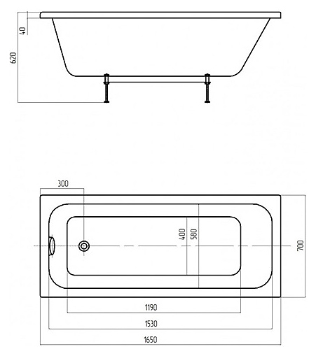 Ванна акриловая AZARIO BELLA прямоугольная 165*70 см (AV.0020165)