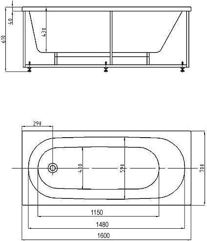 Ванна акриловая AZARIO FELISA прямоугольная 160*70 см (AV.0040160)