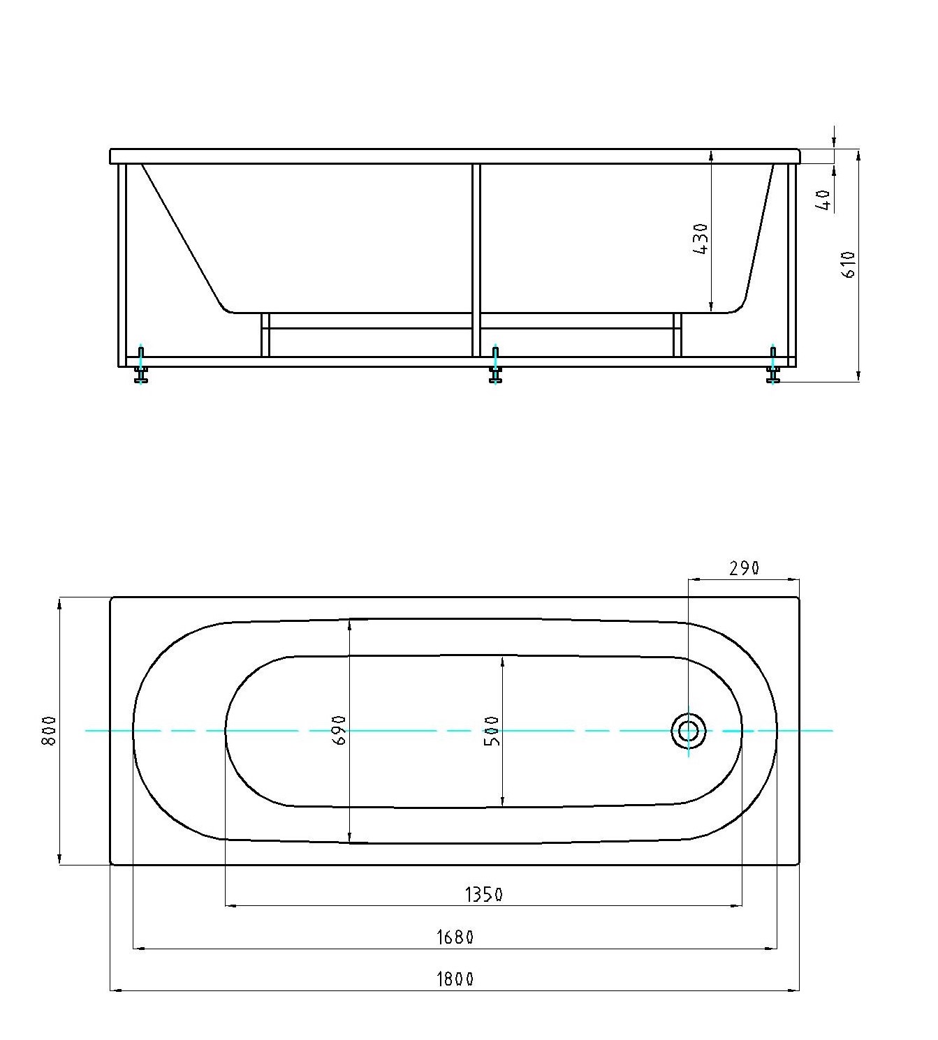 Ванна акриловая AZARIO FELISA прямоугольная 180*80 см (AV.0040180)