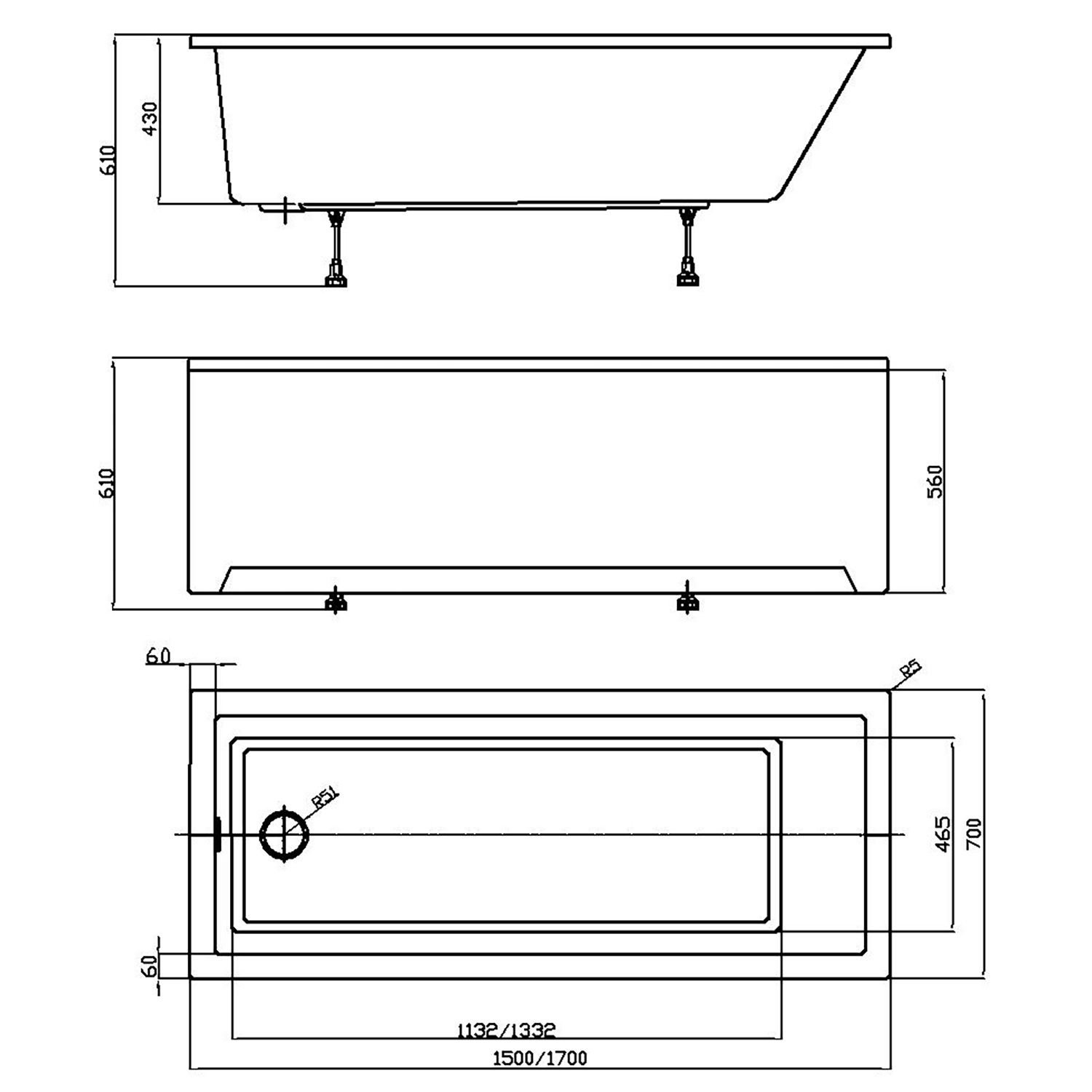 Ванна акриловая Azario LILIANA 170х70 см пристенная, прямоугольная, белый (AV.0012170)