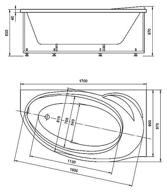 Ванна акриловая AZARIO PAOLINA асимметричная 170*97 см, правосторонняя (AV.0071170)