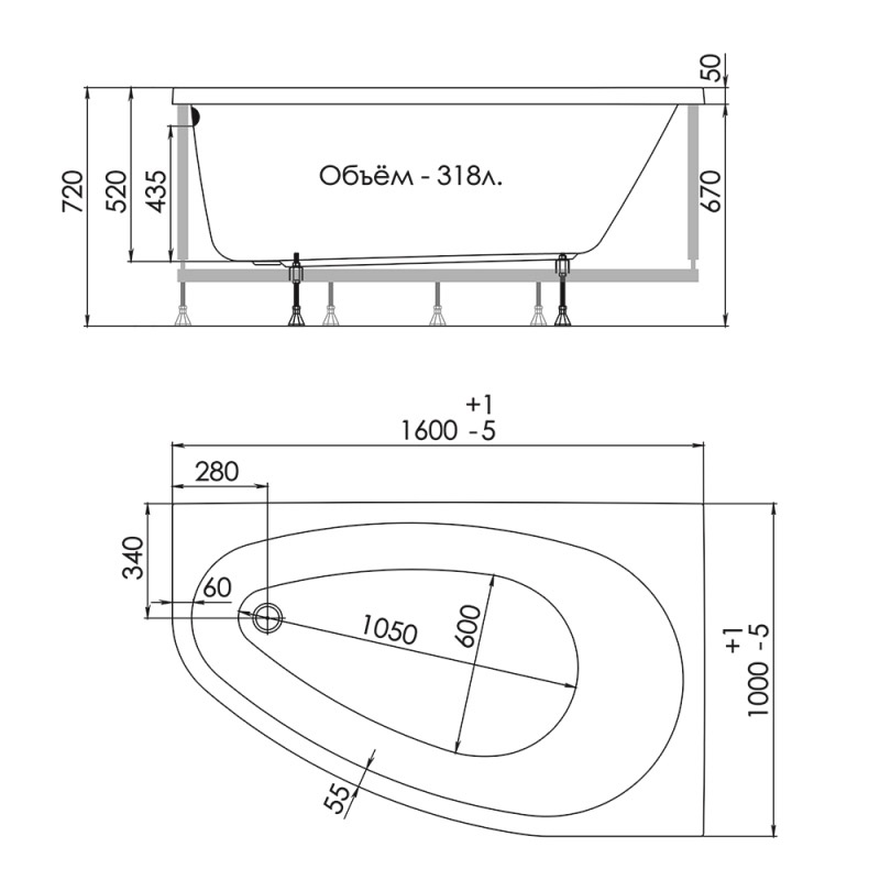 Ванна акриловая Тритон Marseille левая 160x100
