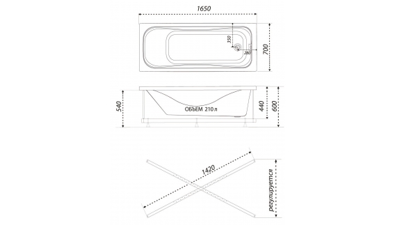 Ванна акриловая Тритон Стандарт 165