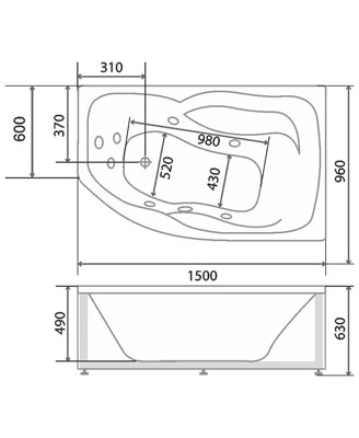 Ванна асимметричная акриловая с каркасом левая 150х96 BellSan Сати R