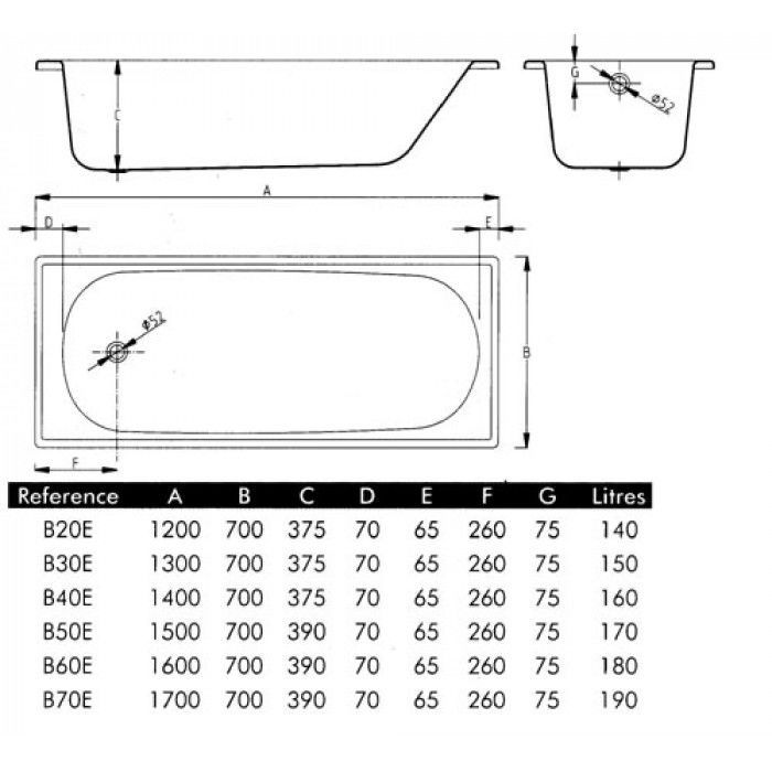 Ванна стальная BLB EUROPA 140x70 с ножками