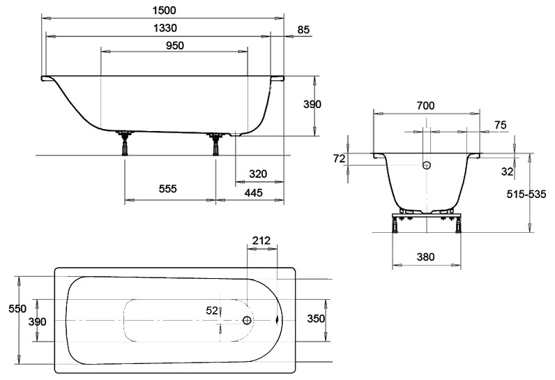 Ванна стальная Kaldewei Eurowa 150*70 119612030001