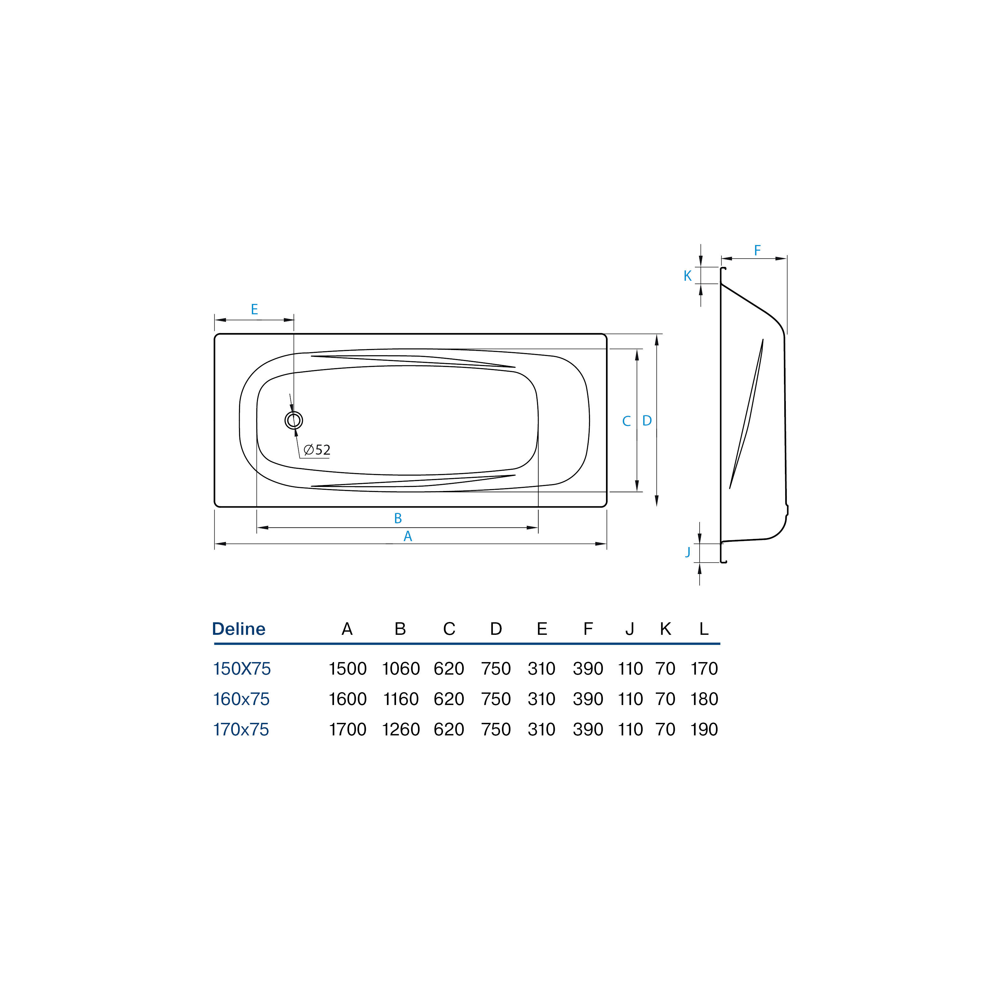 Ванна стальная Koller Pool Deline 1500x750 с отв. под ручки