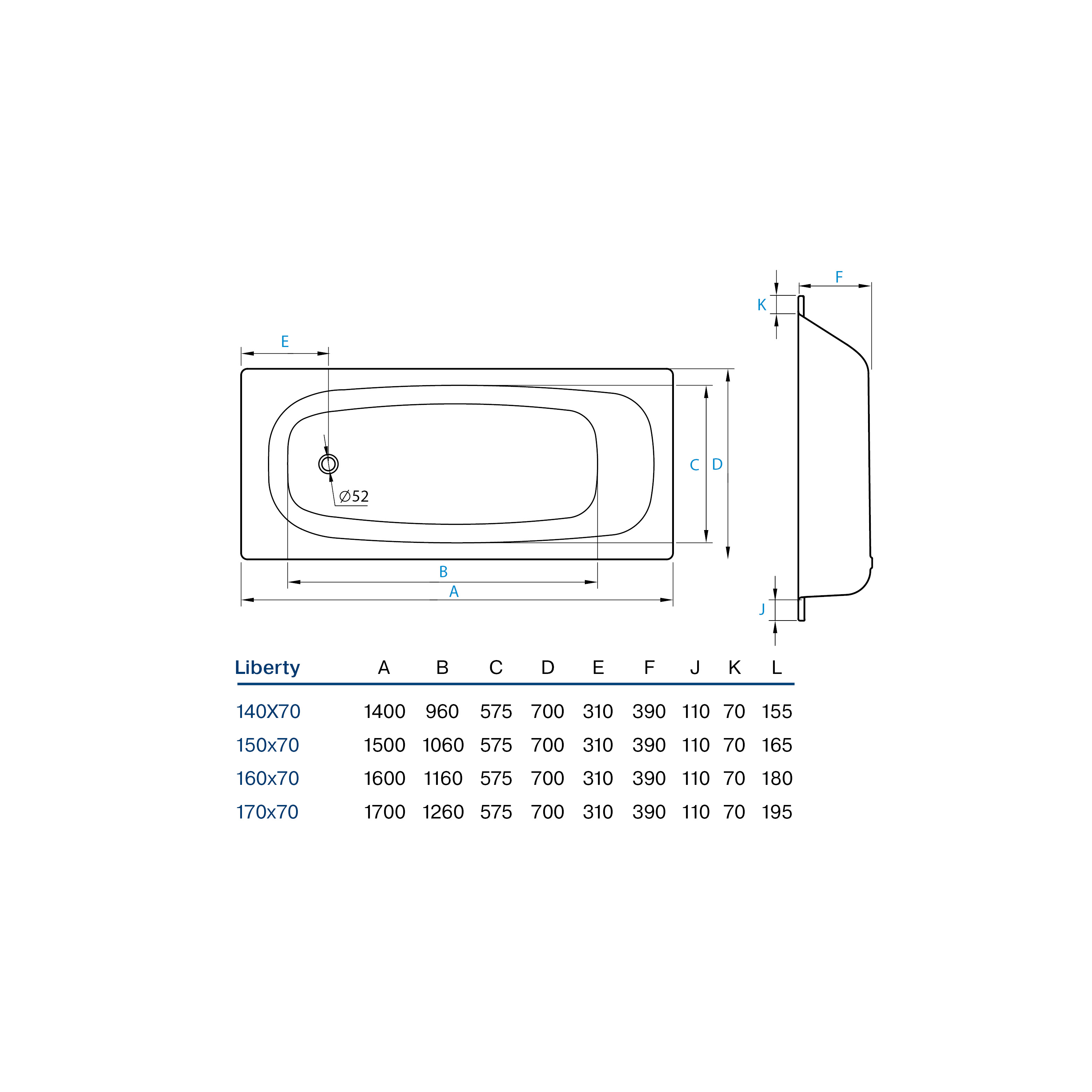 Ванна стальная Koller Pool Liberty 1500x700