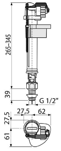Впускной механизм бачка унитаза 265-345мм нижний подвод Alcaplast A17 1/2"