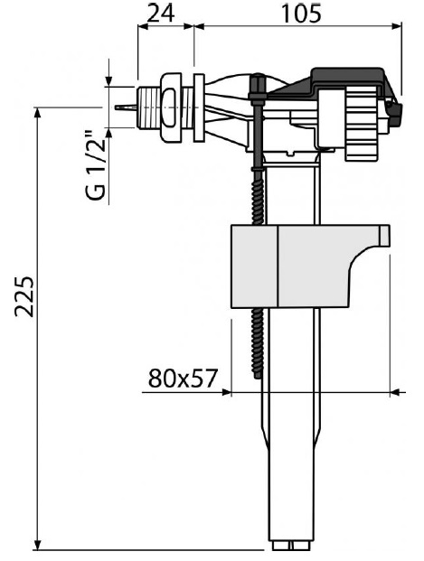 Впускной механизм бачка унитаза боковой подвод Alcaplast A15P 1/2"