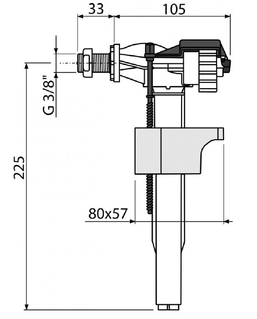 Впускной механизм бачка унитаза боковой подвод Alcaplast A16M 3/8"