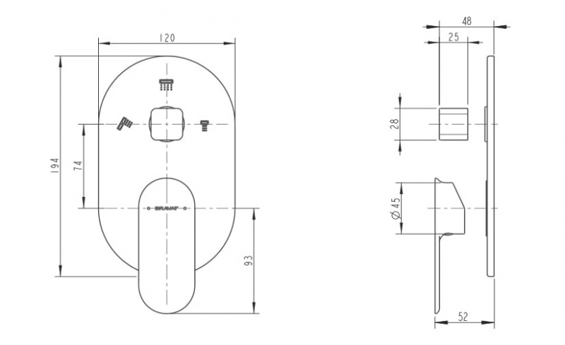 Встраиваемый смеситель Bravat 3 функции P69194C-ENG