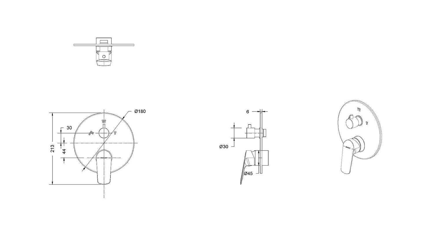Встраиваемый смеситель Bravat 3 функции PB8429564BW-3-ENG