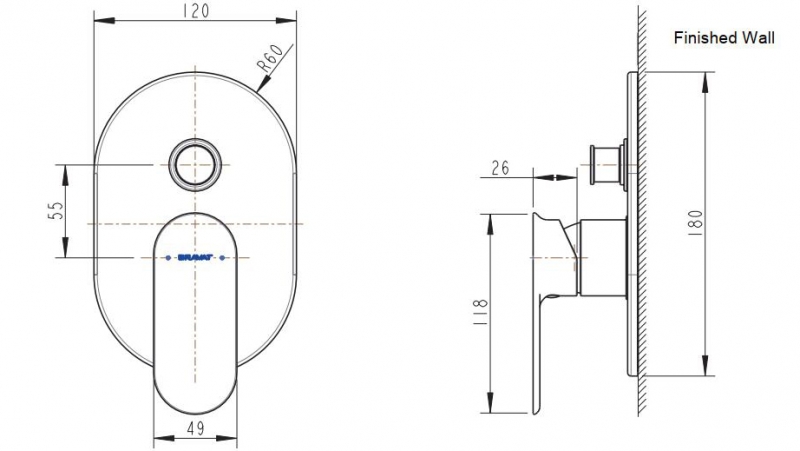 Встраиваемый смеситель Bravat 3 функции PB865104CP-2-ENG