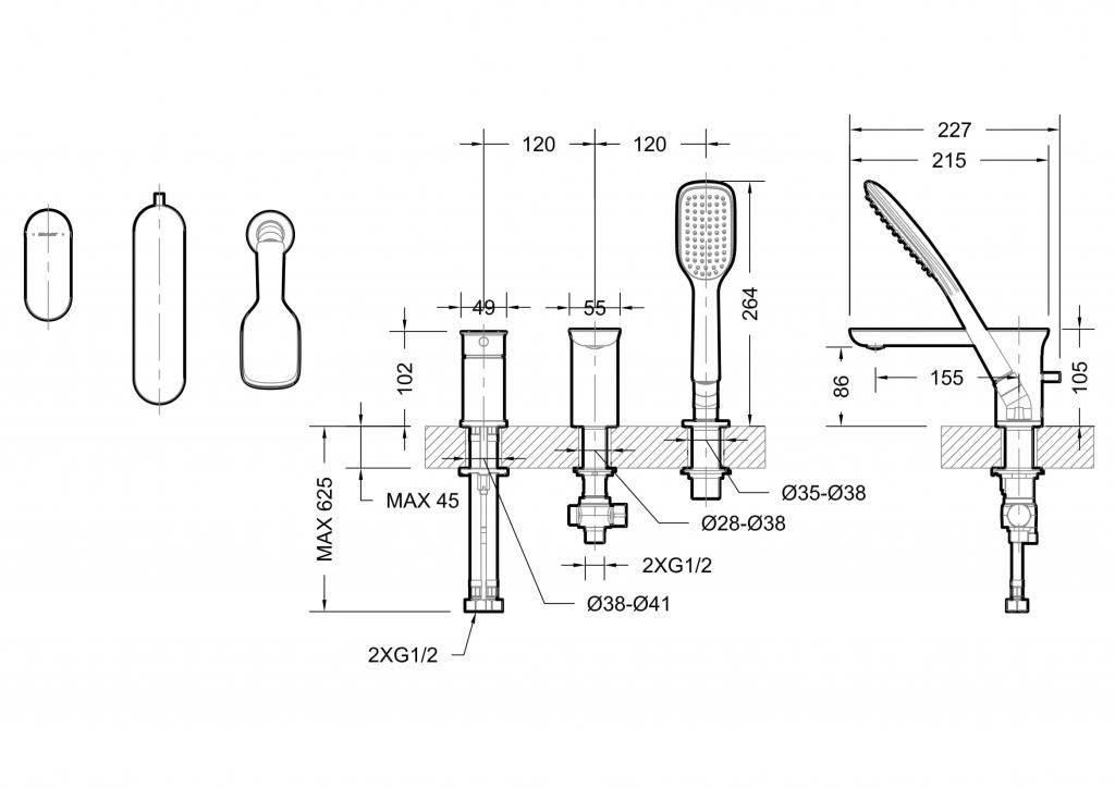 Встраиваемый смеситель на 3 отверстия Bravat Gina на борт ванны F565104C-2-ENG