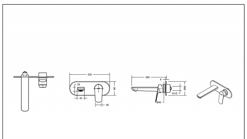 Встраиваемый смеситель Bravat настенный для умывальника P8429564CP-ENG