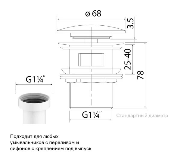 Выпуск для умывальника с переливом Iddis Optima Home OPHWS0Wi88