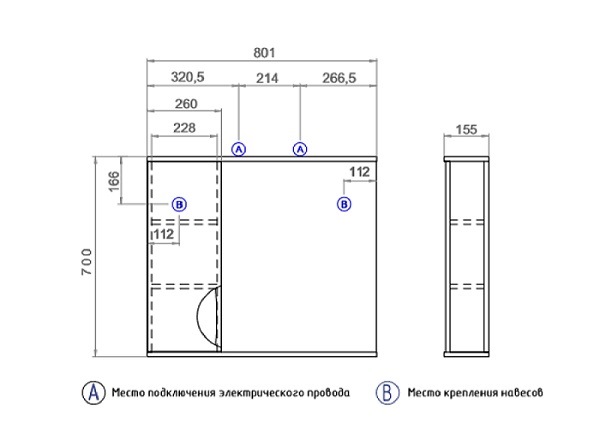 Зеркальный шкаф VIGO Callao 800 со спотом