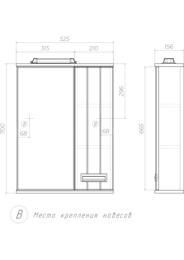 Зеркальный шкаф VIGO Diana 500 со спотом правый