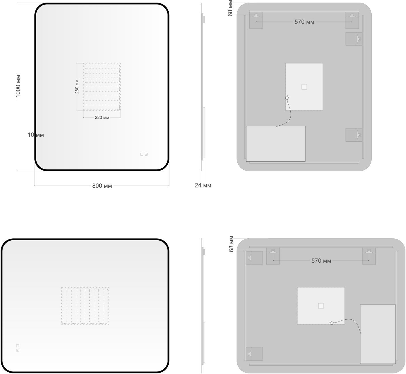 Зеркало Aquanet Контур 1000х800 LED TX антипар, черный