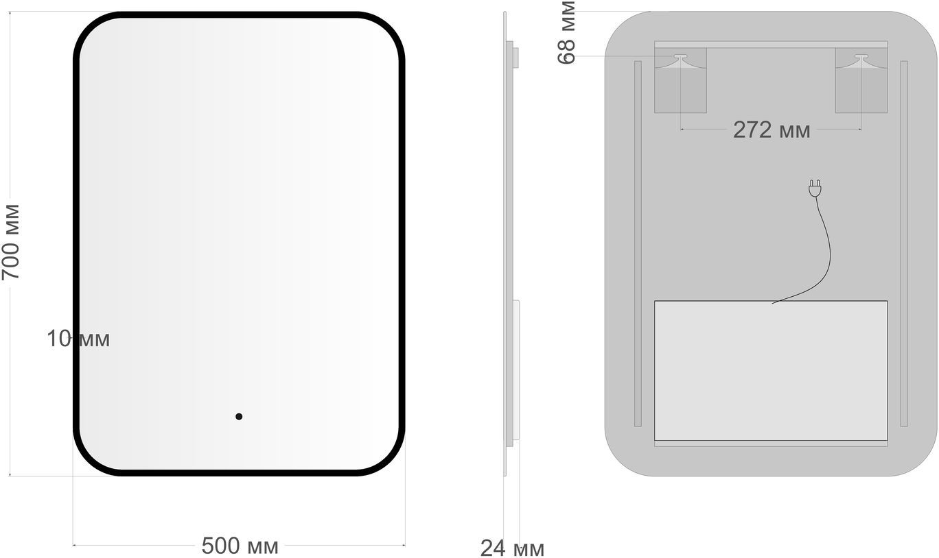 Зеркало Aquanet Контур 500х700 LED TX черный