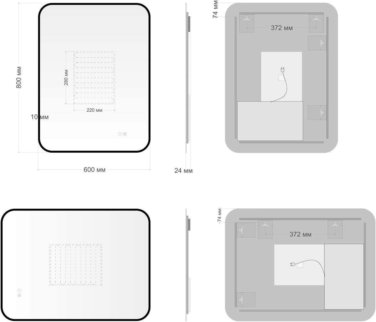 Зеркало Aquanet Контур 600х800 LED TX антипар, черный