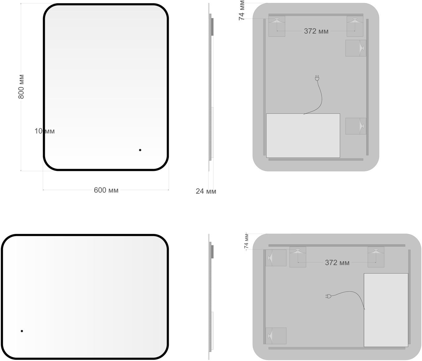 Зеркало Aquanet Контур 600х800 LED TX черный